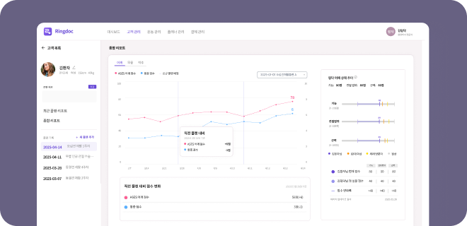 기능·관절범위·근력 점수 변동을 확인하고,고객에게 맞춤형 운동 플랜을 배정할 수 있어요.