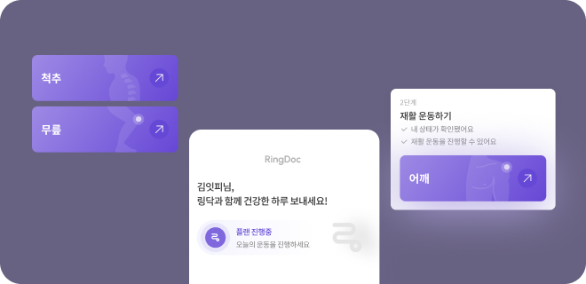 번거롭지만 중요한 재활, 잇피의 링닥으로 쉽게 바꿔보세요.관절 질환 사전 진단부터 맞춤형 운동까지 한 곳에서 관리할 수 있습니다.